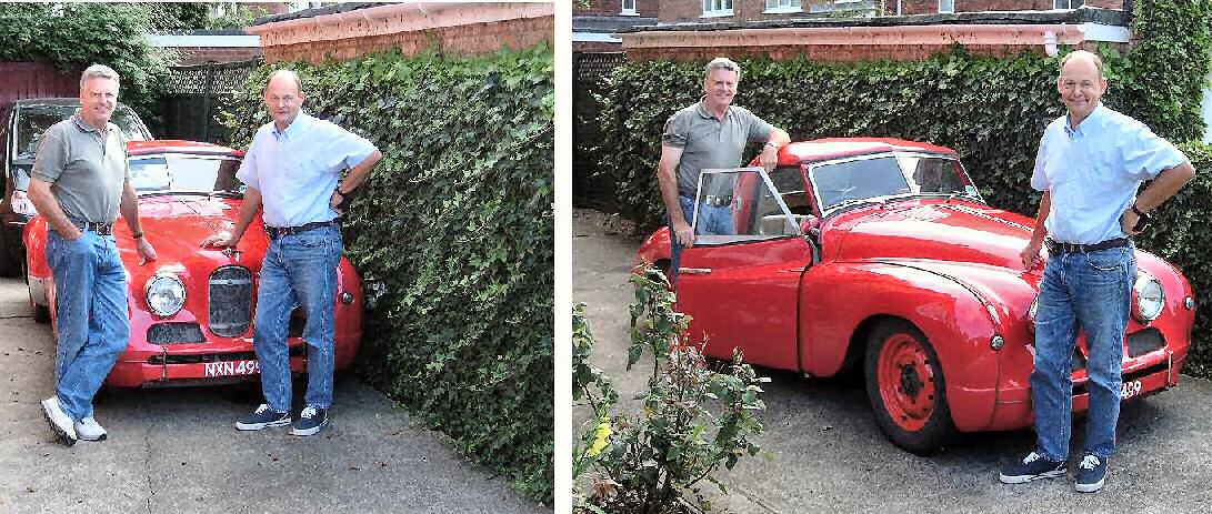 Mike Smailes (left) with Ib Rasmussen, who had decided to buy the car and take it back to Denmark for more competition work