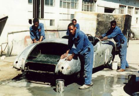 Bodywork more or less done in this very thorough restoration. Mechanical work followed.
